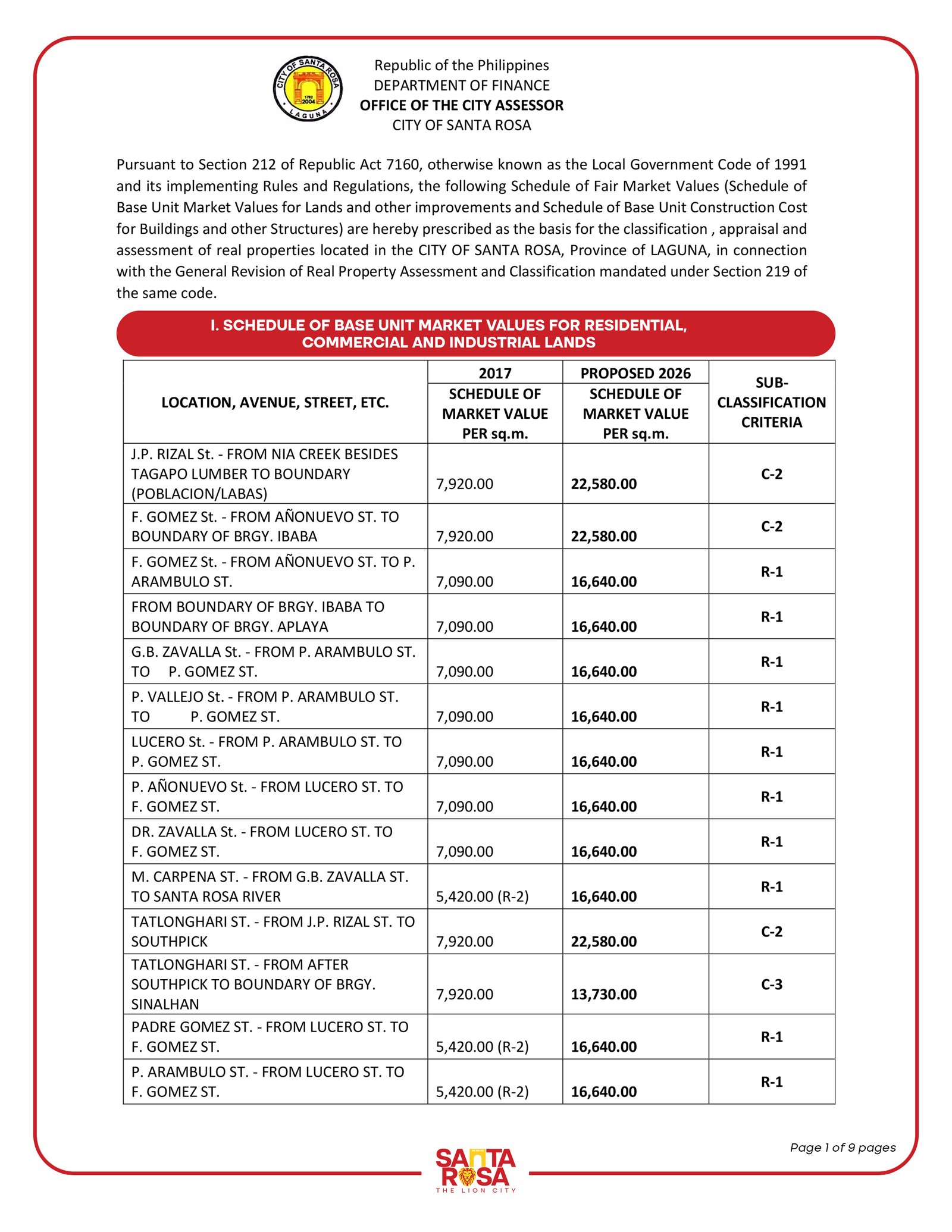 PAMPUBLIKONG KONSULTASYON SA PANUKALANG SCHEDULE OF MARKET VALUES (SMV)